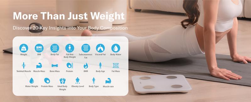 Smart 7-color Bluetooth body fat scale, one-click measurement of BMI and body fat