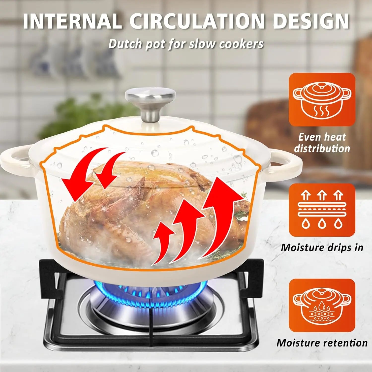 [Self-Circulating Lids for Optimal Flavor] - The Dutch oven and sauce pan lids are designed with a unique raised pattern, allowing water vapor to circulate within the pan, locking in nutrients and moisture, and distributing them evenly across your food. This thermal self-circulating feature helps preserve the natural flavors and nutrients of your ingredients, providing consistently delicious and healthful meals.